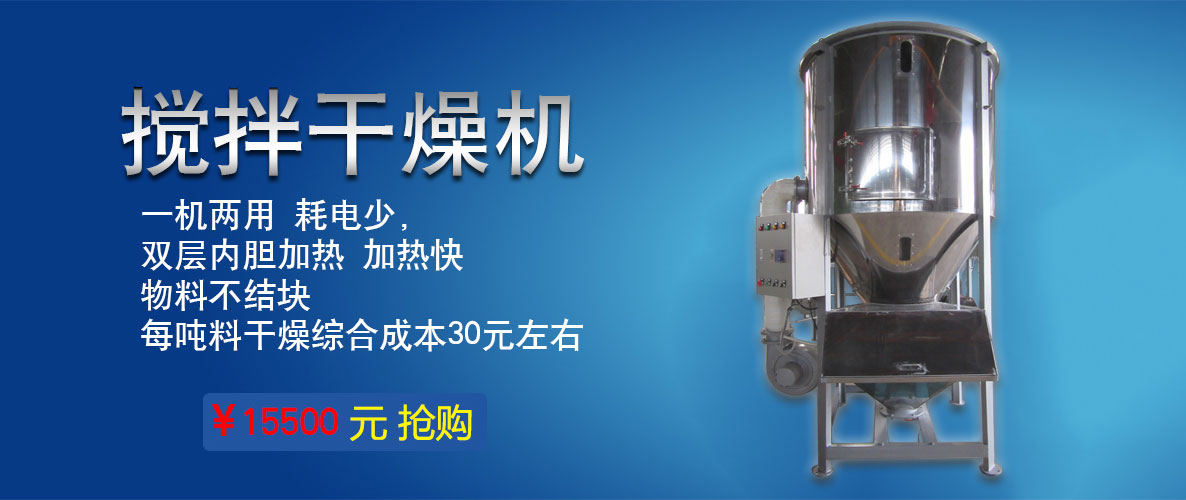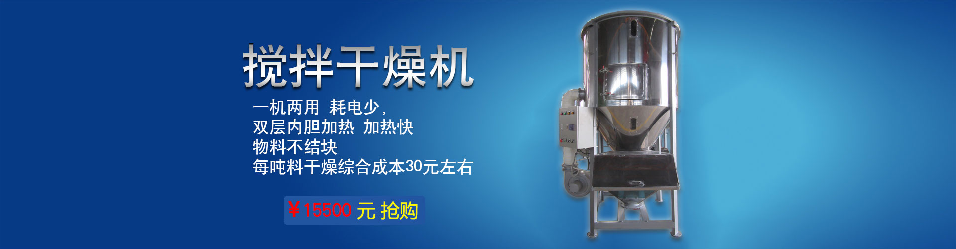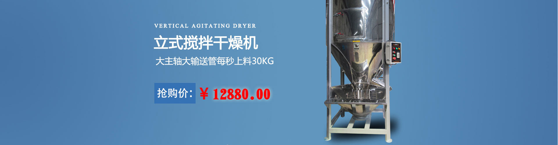 本公司专业生产塑料烘干机、搅拌干燥机、立式拌料机、塑料拌料机、塑料搅拌机、立式搅拌机、塑料混料机、不锈钢搅拌机、螺旋上料机、弹簧上料机、粉体搅拌机、卧式搅拌机、食品上料机、搅拌烘干机、塑料拌料机、立式混色机、塑料混合机、大型立式搅拌机等注塑机周边设备。我司经过多年的努力和研究,在搅拌粉末料这方面有了重大的突破。引得了很多客户的肯定,特别是在国内市场备受欢迎。